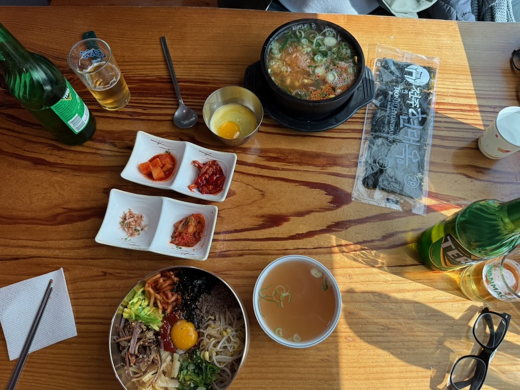 En daar houd ik het bij voor deze dag. We doen niet veel meer dan, okay-ish Koreaans lunchen (wel met een Nederlands menu), slenteren door het dorp, inchecken, een biertje drinken bij de lokale brouwerij, iets beter Italiaans eten, weer terug naar de brouwerij en nog voordat, 월요일, wol-yoil oftewel, de maandag aanbreekt de ogen sluiten.