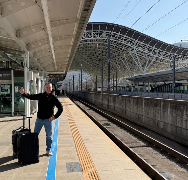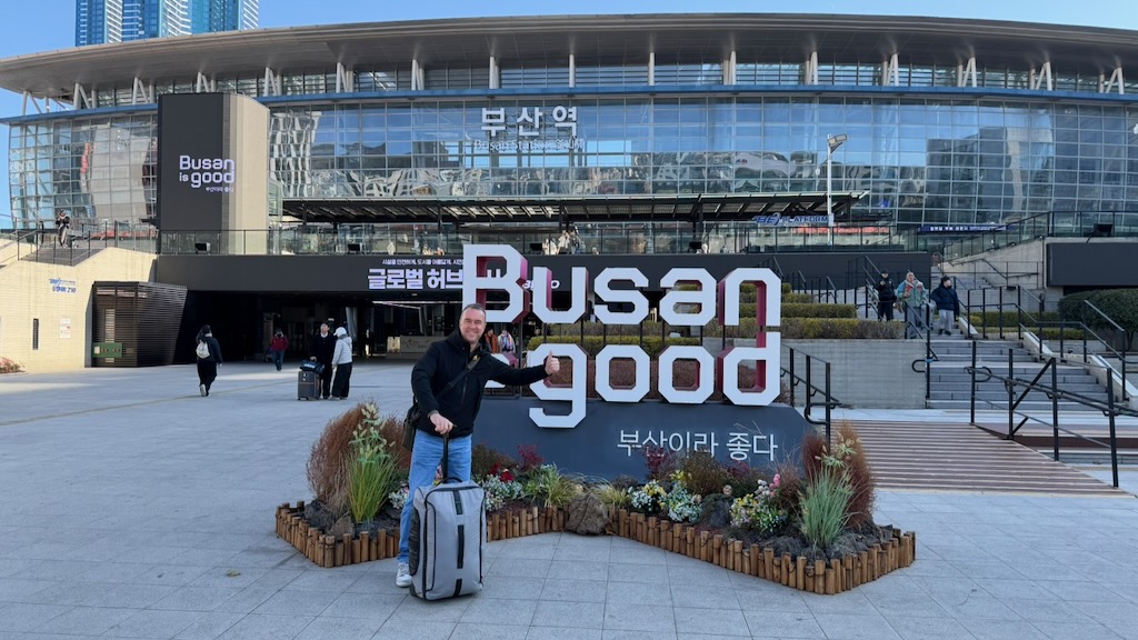 En zo treinen we deze eerste Kerstdag naar Busan, de tweede stad van dit land. Slechts een rit van een half uur en, zoals je mag verwachten, komt de trein punctueel aan om 12:46. Stipt op tijd…