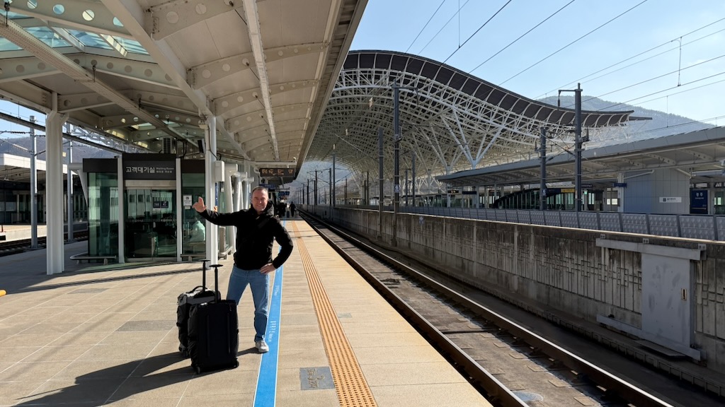 Wellicht is het niet opgevallen, maar persoonlijk heb ik wat trekken die het autisme benaderen. Ik heb diep respect voor diegene die het wel hebben en hun omgeving, maar die autistische trekjes worden hier in Korea volledig op de wenken bediend. Net als Japan, als je iets regelt, dan is het ook geregeld. Punt. Dus vraag je de Hanok eigenaren om een taxi naar het station, dan is die er ook. Komt de trein om 12:12 uur, dan is die er ook en sta je bij een tegel die schrijft dat je voor de ingang van wagon 3 staat, daar is dan ook de ingang van deze, eerste klas, wagon. Ik hou er van.