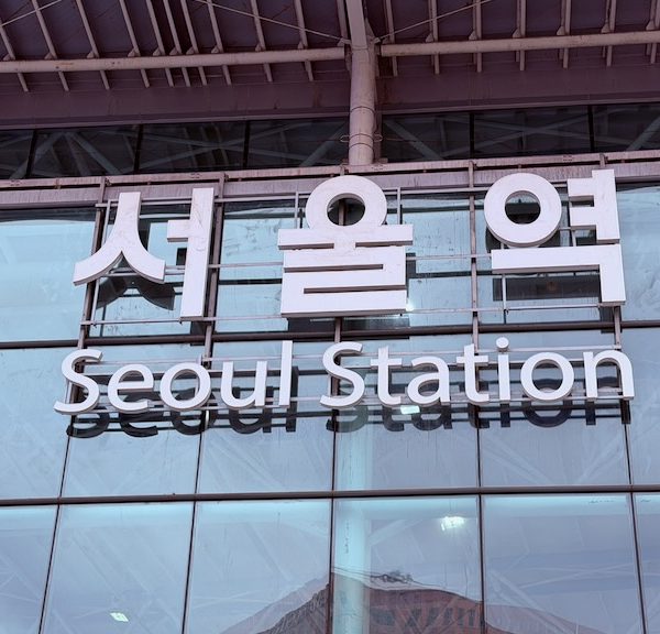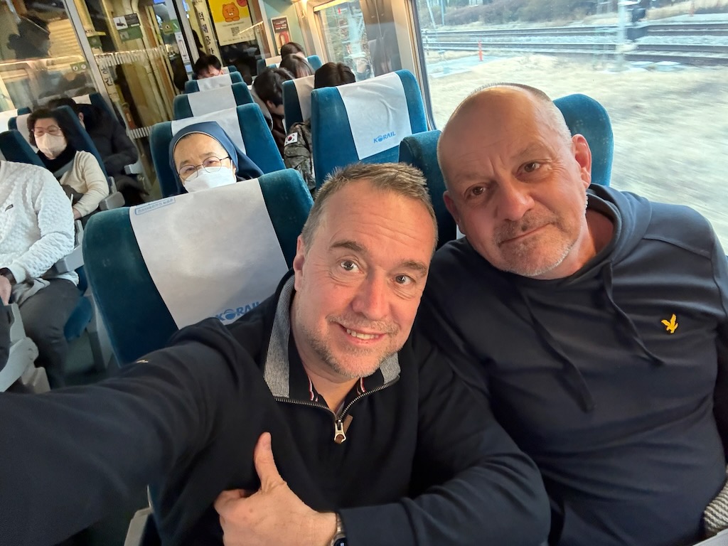 En zo verlaten we voor de eerste keer dit hotel rondom om half elf per taxi om 15 minuten later aan te komen op het immense Seoul Station. Overigens, spreek je Seoul niet uit als: Se-oel, maar als Sool. Zoals de muziekgenre soul. Who cares. Na een Starbuck koffie begeven we ons naar de KTX platformen, waar we niet lang hoeven te wachten op een perronnummer en we al snel plaatsnemen op plek 5A en 5B van wagon 14 in de trein die ons met 300 kilometer per uur naar Gyeongju brengt.