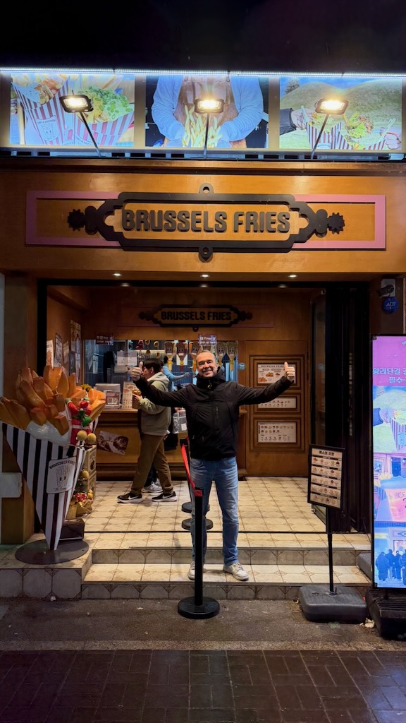 We eten okay-ish, maar het lekkerste gerecht bleek de Bulgogi. De Gimbap (Koreaanse sushi) was beduidend minder. Maar wel weer twee vinkjes op de Korean Food Bingokaart. Wellicht hadden we toch gebruik moeten maken van de lokale Brusselse frietkot 😃. Na een paar matige pilsjes, in ook een te fout verlichte kroeg, begeven we ons, per taxi, terug naar ons traditionele Koreaanse Woning. En daar… Daar komen, we voor vandaag, de grootste uitdaging tegen. Het toilet is verstopt. En leg dat maar eens uit tegen slecht Engels sprekende per telefoon uit. Overigens, is het Engels van dit echtpaar, beter dan ons Koreaans.