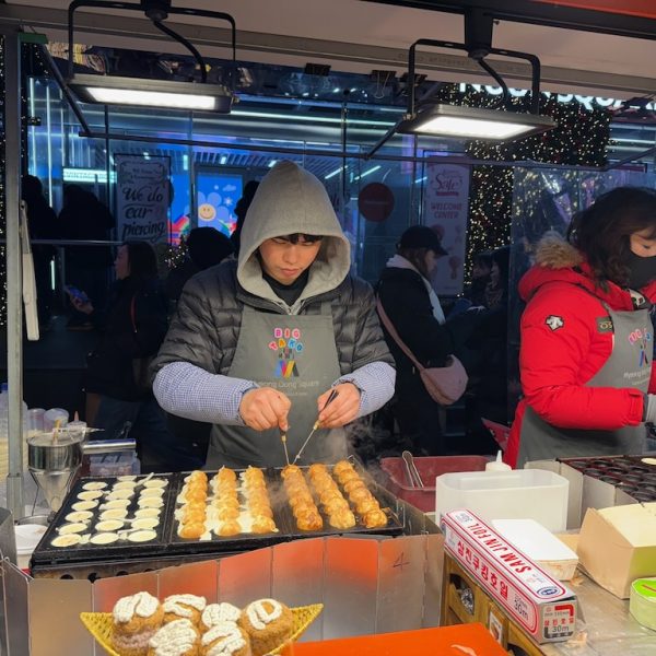 Na een korte opfrisbeurt en een biertje in een Moulin Rouge-achtige omgeving, nemen we misschien wel de belangrijkste eerste stap. We stappen, in een vrieskast koud Seoul, de straat op. Over een opfrisbeurtje gesproken. En stond het stoplicht misschien nog op oranje in Nederland of zelfs op het vliegveld hier in Zuid Korea. Het moment dat we ons een weg weten te vinden is, blijkt die eerste stap ergens eind november, een ontzettend goed besluit geweest.