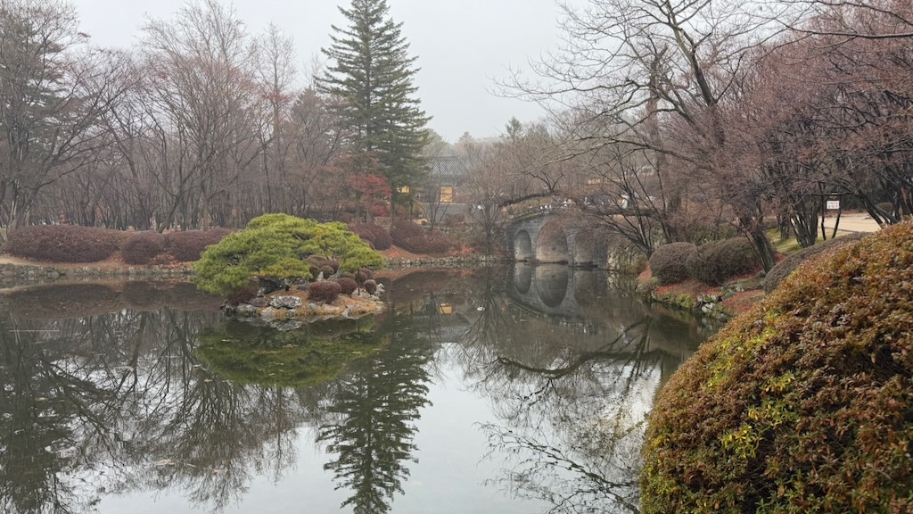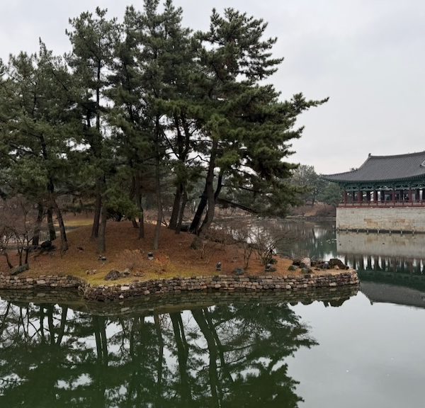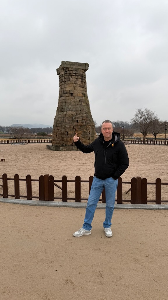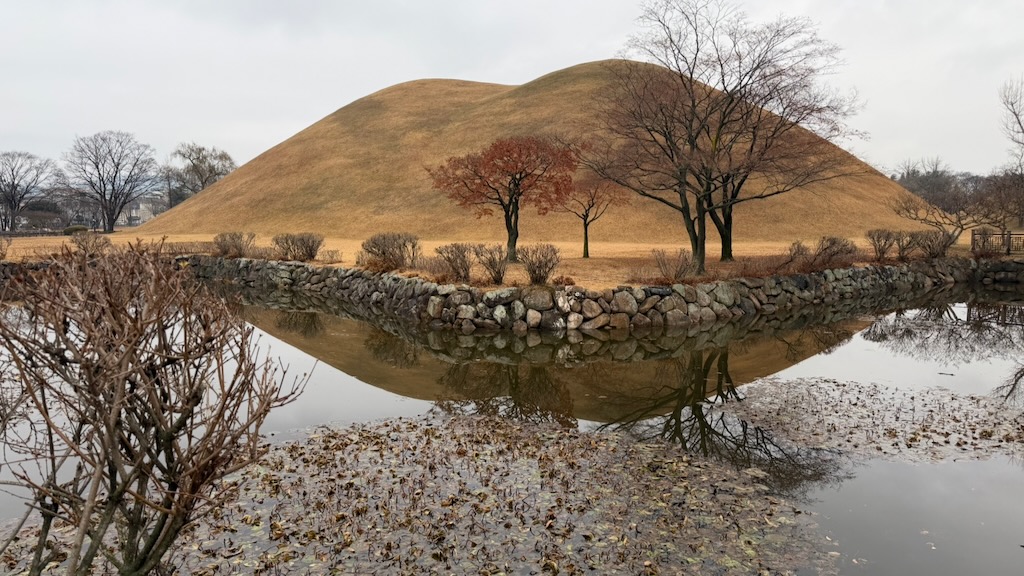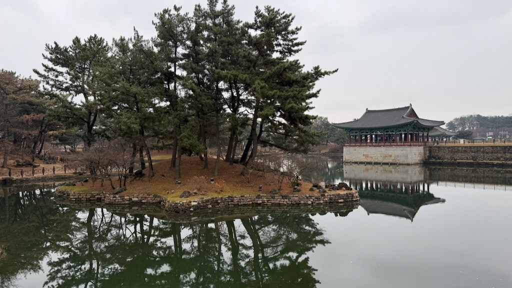En, terwijl ik dit verhaal wil afronden, vergeet ik de nabij gelegen herbouwde paleizen rondom een vijver, de vreselijk smakende nep patatten van een lokaal kioskje, het feit dat in de buurt nummer 47 nog geen maand geleden in deze voormalige hoofdstad heeft geslapen, dat we matig en te veel Koreaans laat hebben geluncht en dat we uiteindelijk de dag hebben afgesloten met een Pizza, de kerstman op bezoek krijgen en een verblijf aan een hippe tent hier in de oude hoofdstad van de Silla Dynastie.